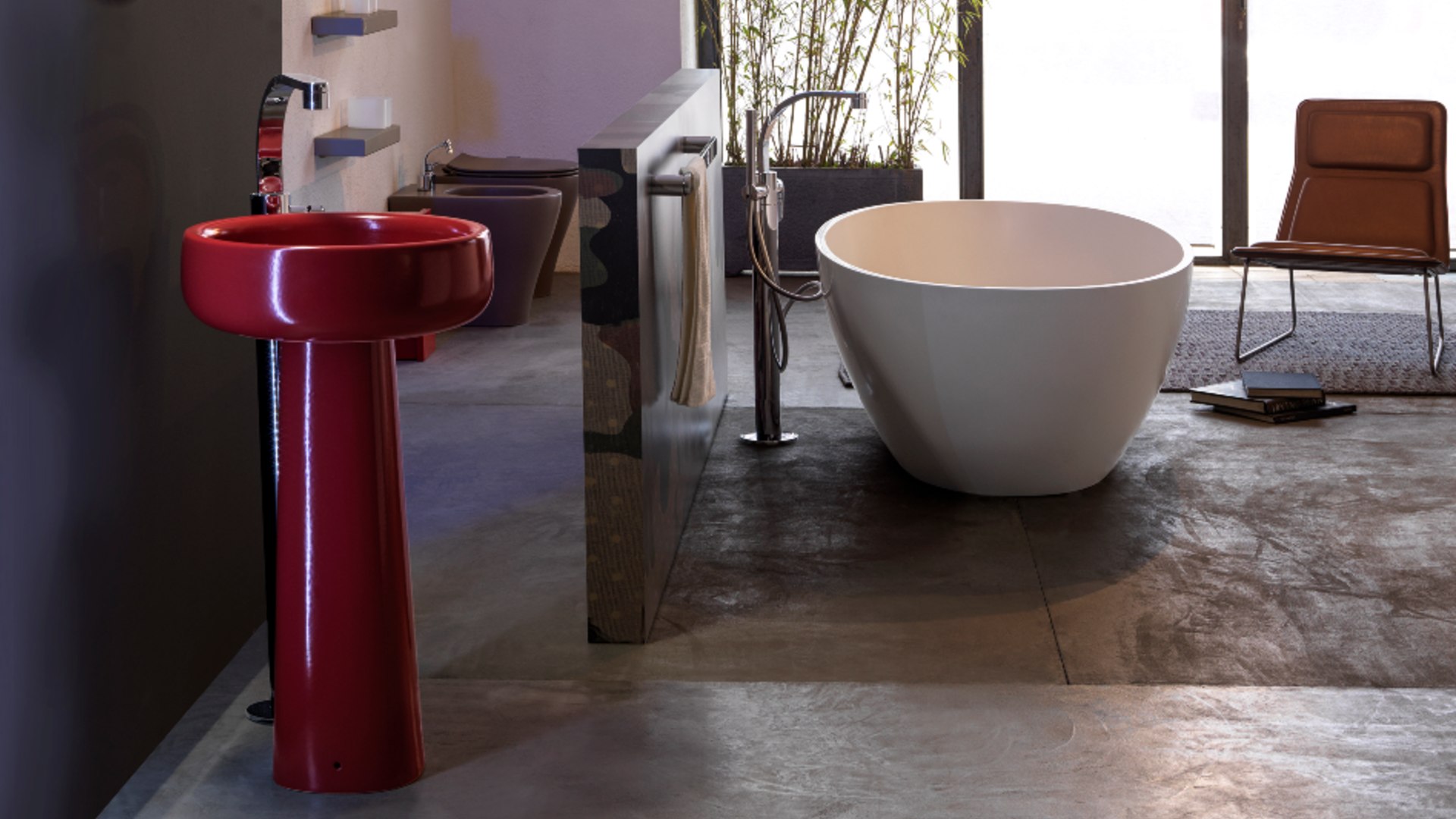 Wall-hung toilet bowl and wall-hung bidet with soft, rounded lines that are contemporary versions of two classic bathroom fixtures. This sophisticated design, with carefully studied proportions, accurately calibrated to adapt to a broader and mixed ambience, is suited for domestic as well as public spaces.