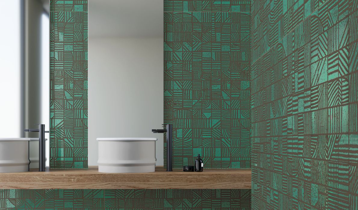 Mater in produced in porcelain stoneware in the sizes 15×30 cm, 30×30 cm e 120×120 cm, available in a basic version with neutral background in the colours Uni Beige and Uni Moka. Starting from these two modules, the collection develops into six variants characterized by a glossy finish and a decorative pattern, Segno. Combined with Uni Beige it creates Segno Bianco, Segno Blu and Segno Terra, on Uni Moka it gives birth to Segno Nero, Segno Verde and Segno Ocra.