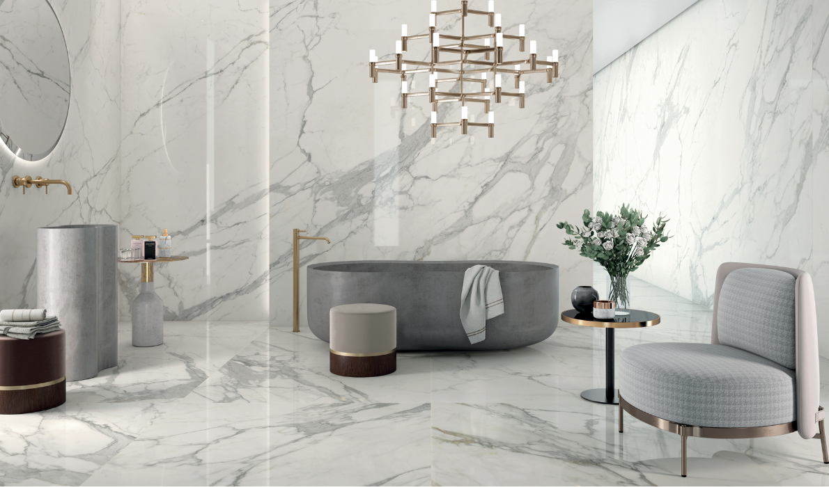 Noblesse is _ large collection of 12 sumptuous ceramic marbles chosen from among the noblest natural essences, whose timeless beauty it celebrates through vibrant, innovative colours and recalibrated classic nuances. A wealth of chromatic suggestions and textures that are true works of art: with them Lea Ceramiche interprets exclusive living contexts with an innate sense of design, in which elegance and well-being meet, redefining the very concept of luxury.