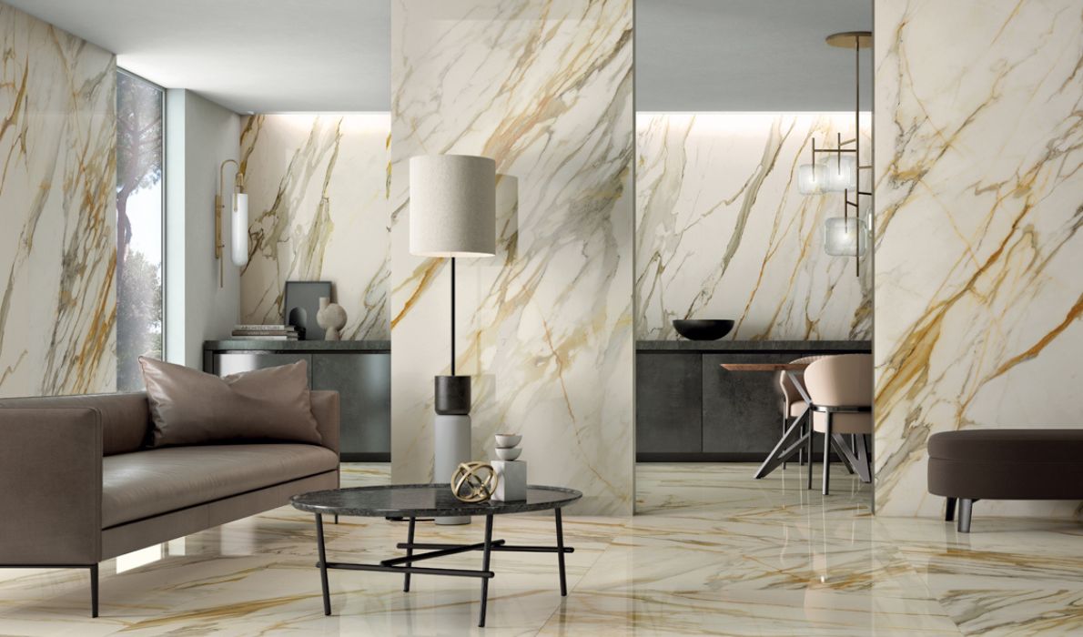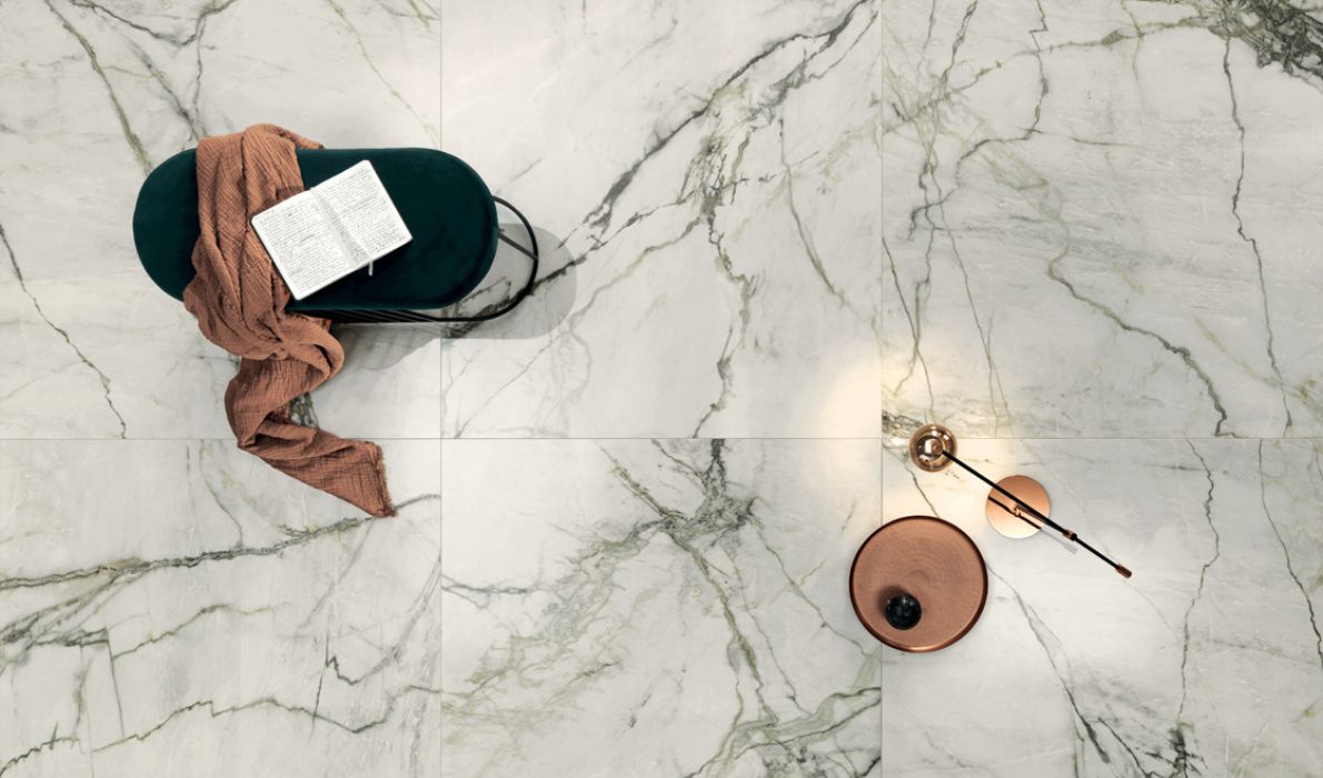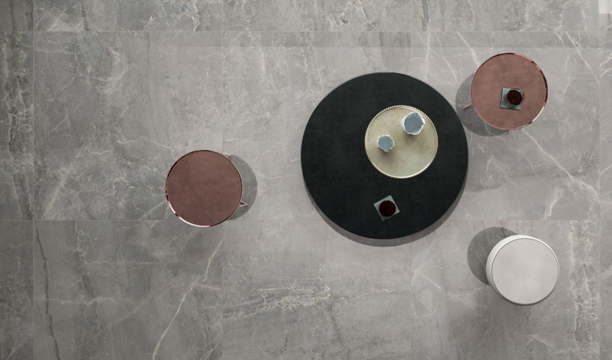 A journey of the senses through the material that starts from the ostentatious graphic and chromatic richness of marble to arrive at ceramic surfaces with an unmistakable personality.
