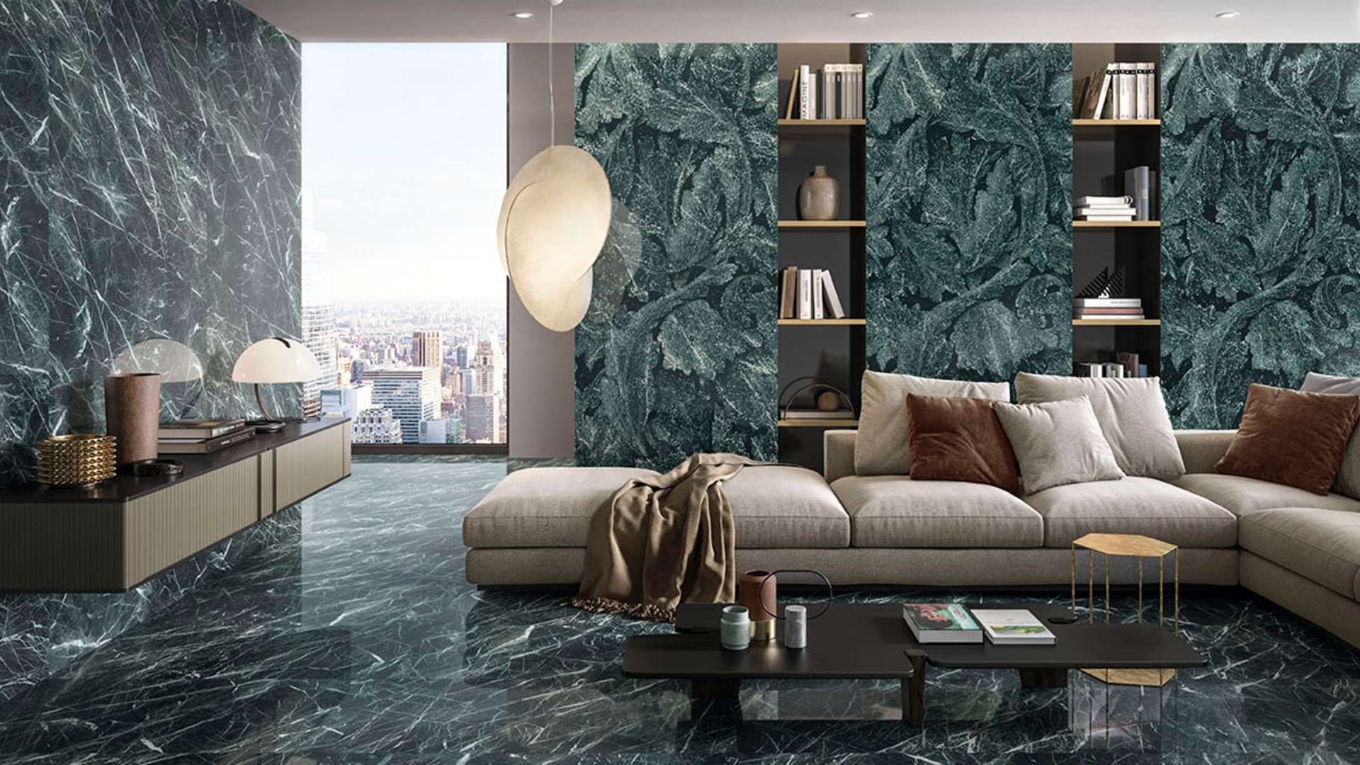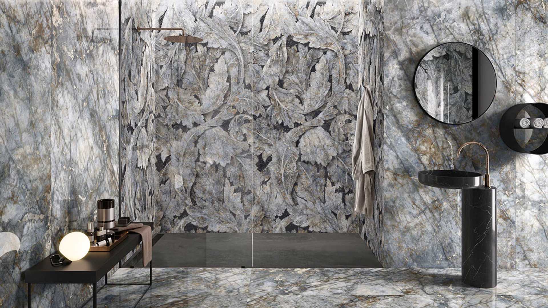 Porcelain stoneware clad in pure white, inspired by the most limpid, essential form of white marble, which shaped the identity of classicism. Calacatta Black marble transfers this same elegance into an alternative colour universe, which encapsulates every shade of deep black, interspersed with grey, yellow and brown veins. Blue in all its thousand shades from azure to cobalt is the central theme of the Patagonia variant, referencing the beauty of the “marble cathedrals” on Lake General Carrera, between Argentina and Chile. Verde Saint Denis is the very essence of nature, the colour of emerald, where aesthetic daring and the drive for authenticity meet, adding the noble beauty of marble to the most contemporary architectural projects.