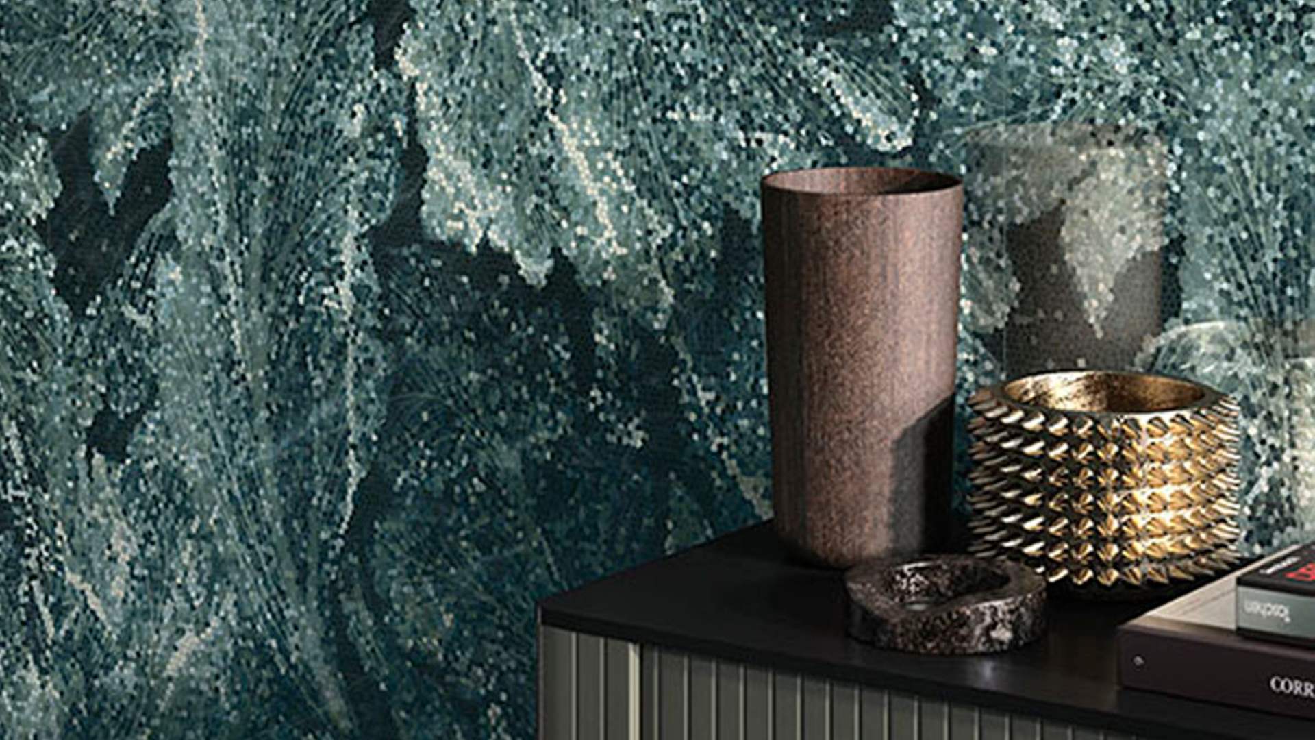 Evolving fresh colours and patterns, the Tele di Marmo Revolution project continues to reinterpret marble in a contemporary key by extending the range with the Acanto pattern. Here the influence of artistic mosaic is clear, expressed through the use of precise, finely judged geometric motifs. Powerful and eye-catching, the acanthus leaves represented define a new, unique style, with subtle, tasteful shades and flawless details. This highly expressive decor makes the Tele di Marmo Revolution project a complete covering offering, in which vein patterns, reflections and details acquire a personality that will make its mark in any project, unique and original as a work of art. DECORS A decorative selection of mosaics further enhances the series, creating the maximum versatility of installation.