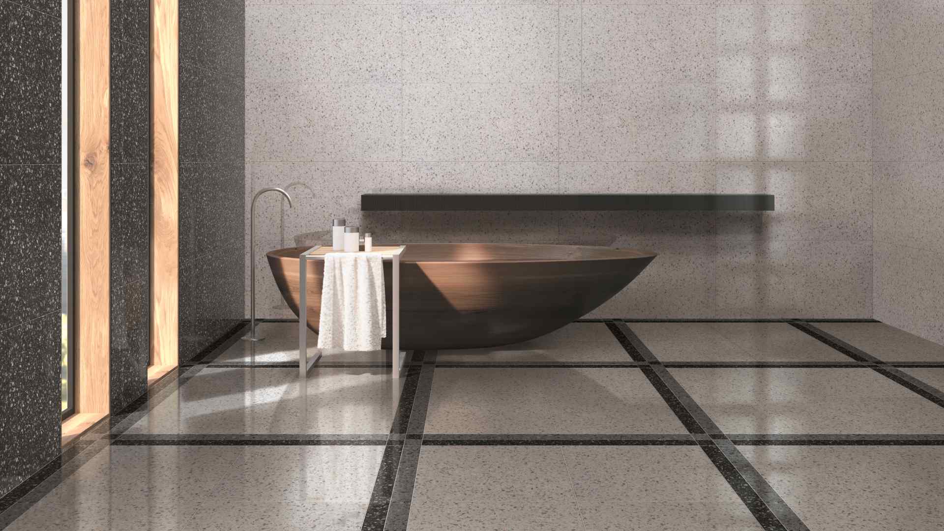 Venezia describes a vivid and elegant chromatic universe, with the sophisticated variations in the grain tone, that is typical of Venetian terrazzo. The proposal in eight different colourings, to which the original Palladio version is added, in the new 60×120 and 60×60 cm large sizes and with two natural and LUX surface finishes, multiplies the expressive potential at the service of interior design, to be used freely for the floor and walls to embellish classic architectures as well as to design decidedly contemporary spaces.