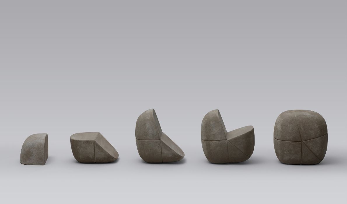 Yama focuses on the concept of reduction, reproducing the effect of a stone cut by man in different phases, as an homage to the work of designer and sculptor Isamu Noguchi.